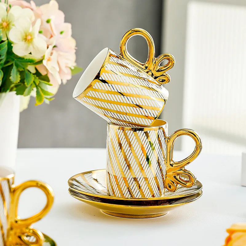 BloomNBoom Luxe Gold Coffee Cup & Saucer Set