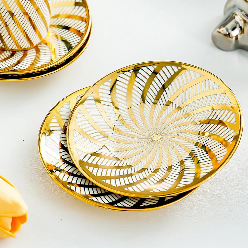 Sip your favourite brew in style with the BloomNBoom Luxe Gold Coffee Cup & Saucer Set. Crafted from high-quality ceramic with a sleek electroplated finish, this set blends durability with elegance. The striped pattern adds sophistication, making it perfect for morning coffee, afternoon tea, or entertaining guests.