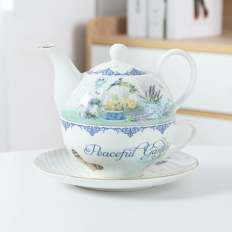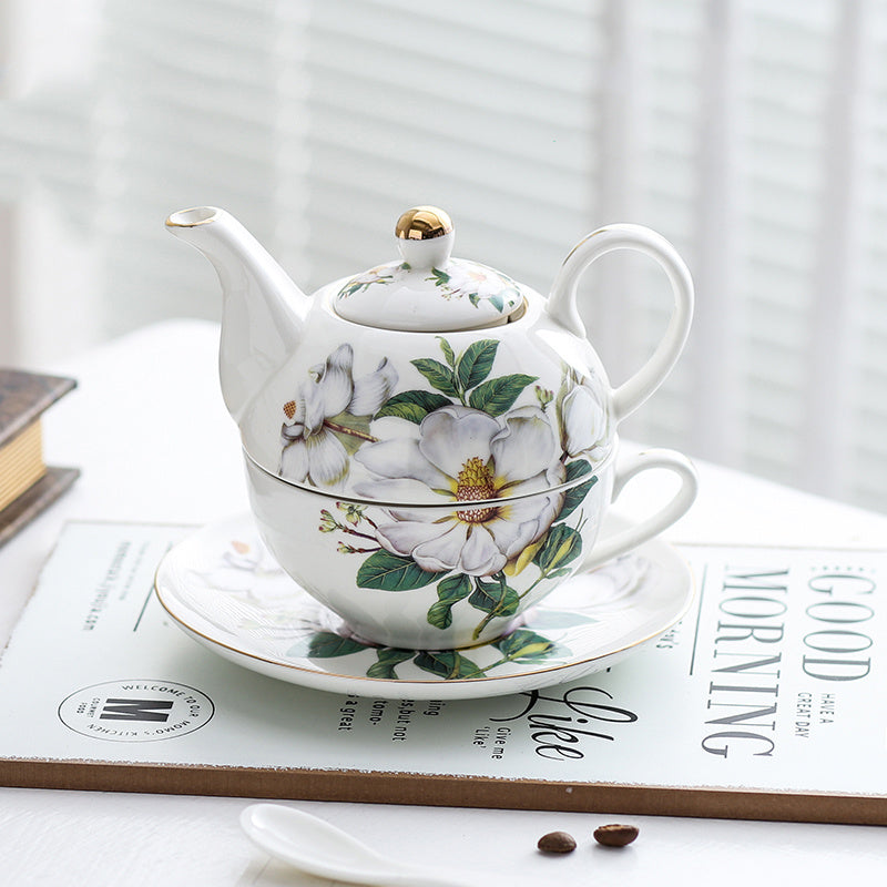 BloomNBoom Elegant Bone China Teapot & Cup Set