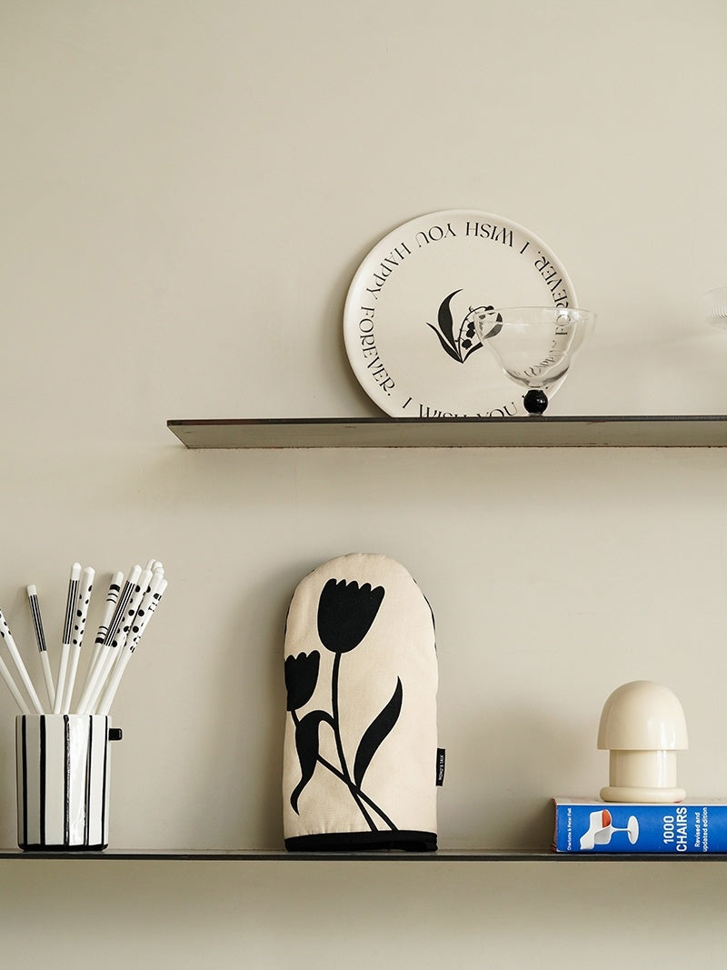 Add a touch of Scandinavian charm to your kitchen with the BloomNBoom Nordic Style Cotton Oven Gloves. Made from pure cotton twill, these gloves combine comfort, safety, and style. The playful black floral print on a natural background makes them as decorative as they are functional, while providing reliable insulation for cooking, baking, and grilling.