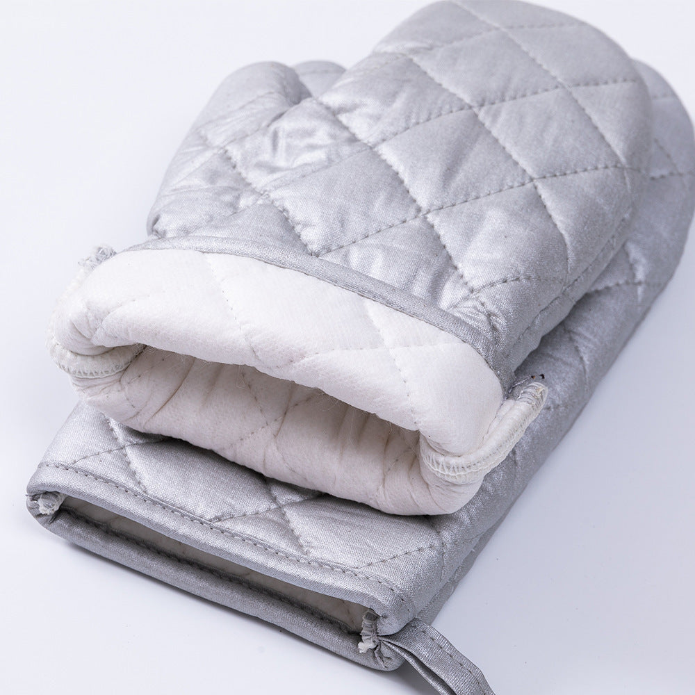 Protect your hands in style with the BloomNBoom Silver Cotton Oven Glove. Crafted from pure cotton with quilted insulation, this glove provides reliable thermal protection for microwaves, ovens, and hot cookware. Its sleek silver finish and modern minimalist style make it a practical yet stylish addition to any kitchen.